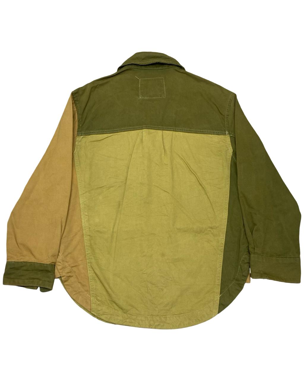 A standout piece from Bershka, this multicolor panel utility overshirt combines military green, mustard, and tan tones in a bold, color-blocked design. Great for streetwear or layered casual looks.