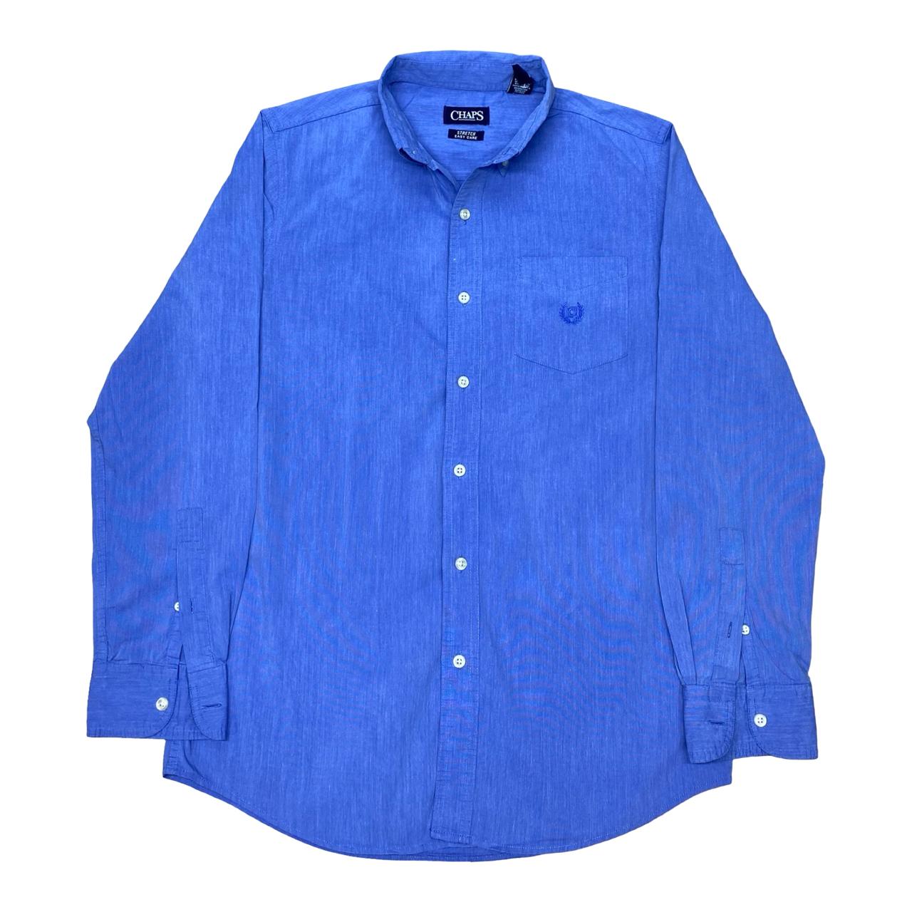 A classic Chaps button-up shirt in a rich blue shade, featuring a neat embroidered chest logo. Perfect for smart-casual looks, whether at the office or for an evening out.