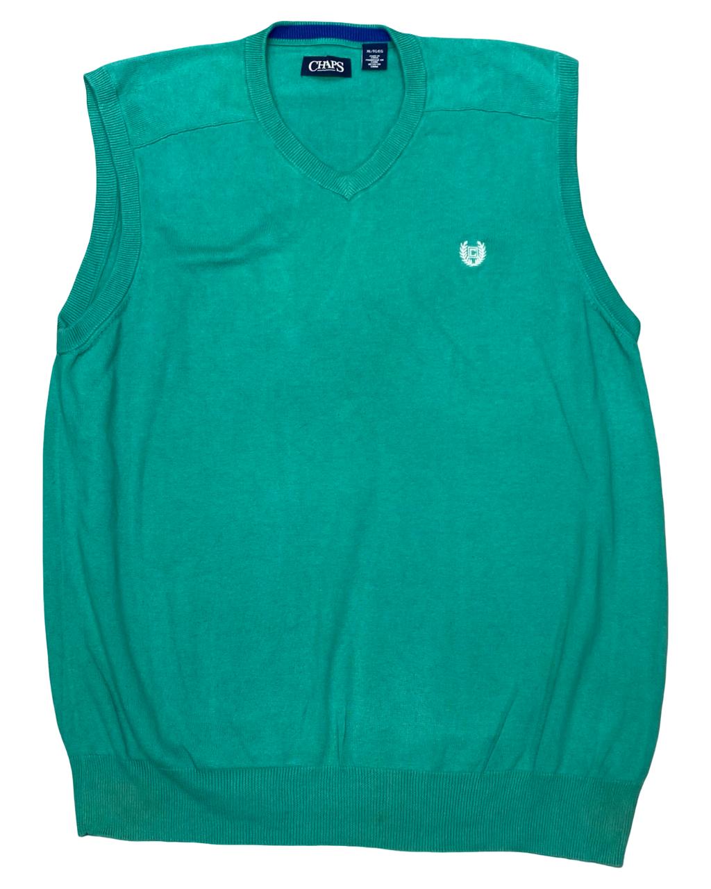Add a preppy touch to your wardrobe with this vibrant green V-neck sweater vest from Chaps. Made from 100% cotton, this lightweight knit is perfect for layering over button-downs or polos — ideal for golf, casual Fridays, or elevated everyday wear.