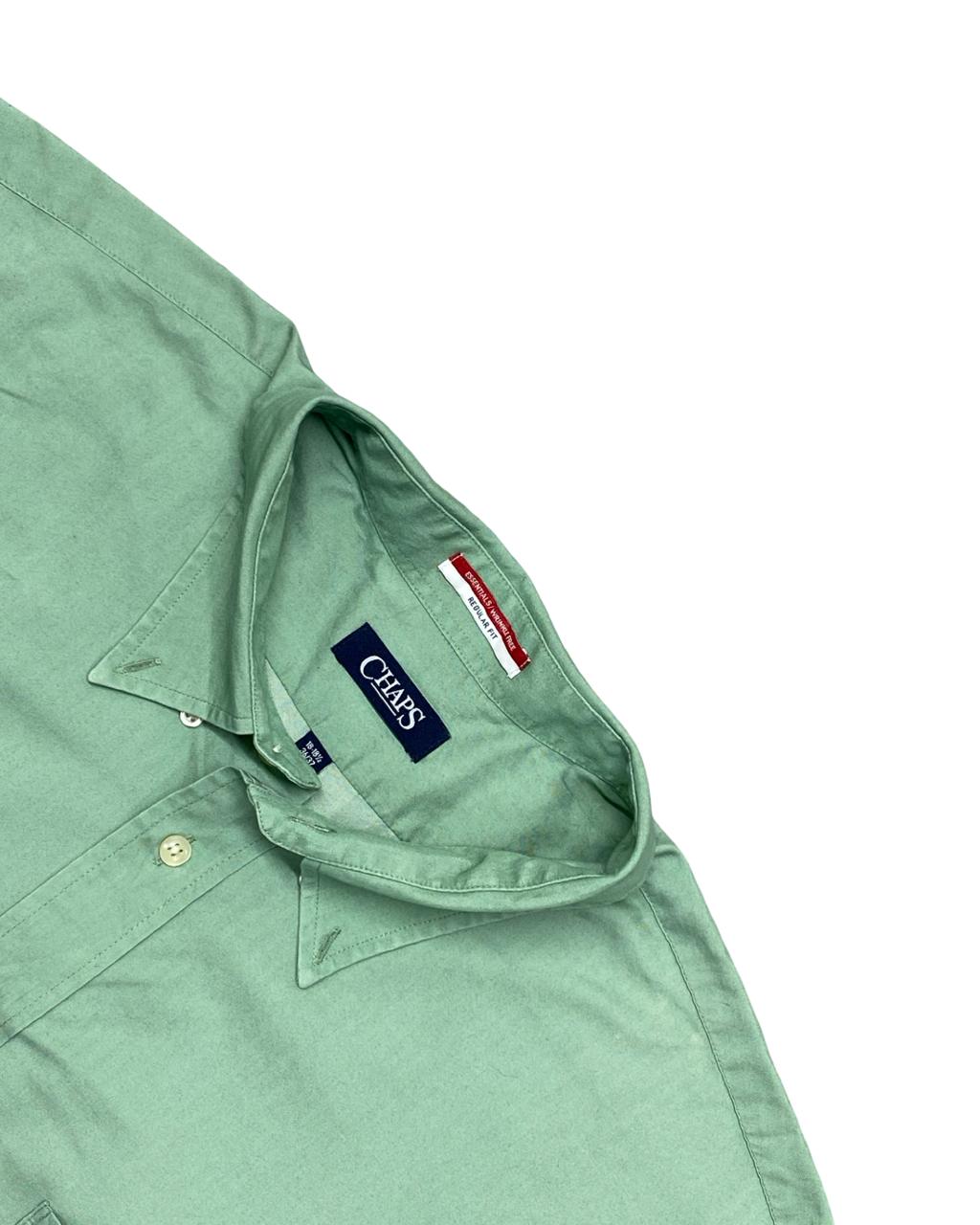 A versatile solid green long-sleeve shirt from Chaps, perfect for dressing up or down. Crafted from a soft, wrinkle-free cotton blend with a classic fit and timeless style.