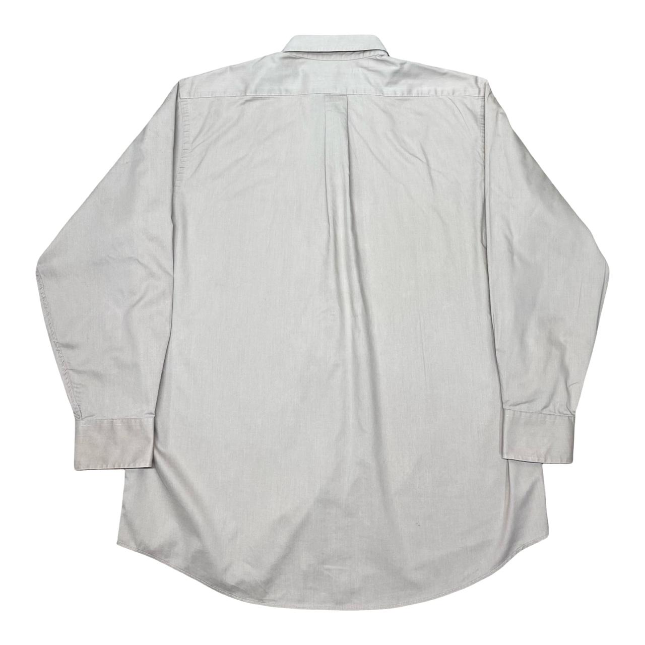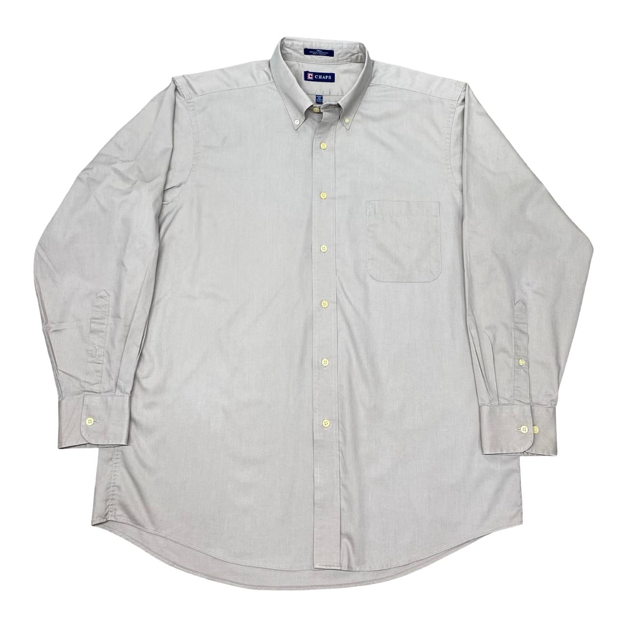 Classic and versatile Chaps long-sleeve solid button-down shirt in light grey. Designed with a timeless button-down collar, chest pocket, and traditional fit, this piece works perfectly for both casual and formal layering.