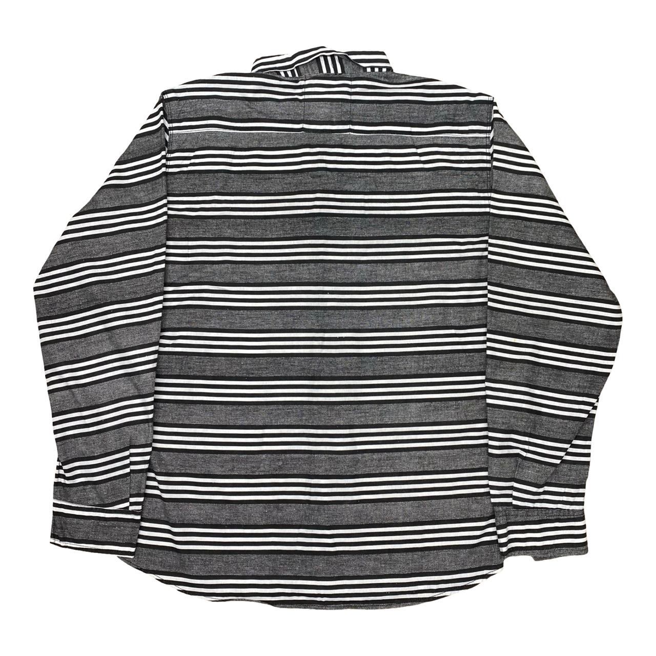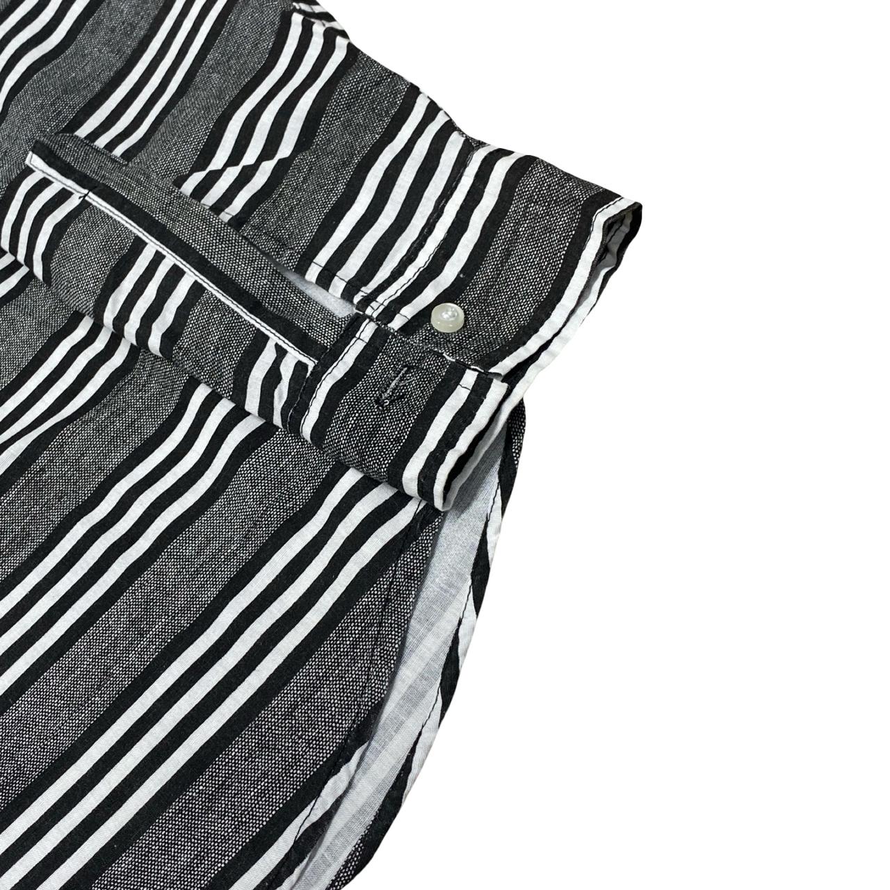 A stylish Donear striped shirt in classic black and white horizontal stripes, featuring a sleek embroidered stag logo. Perfect for both casual and semi-formal wear.