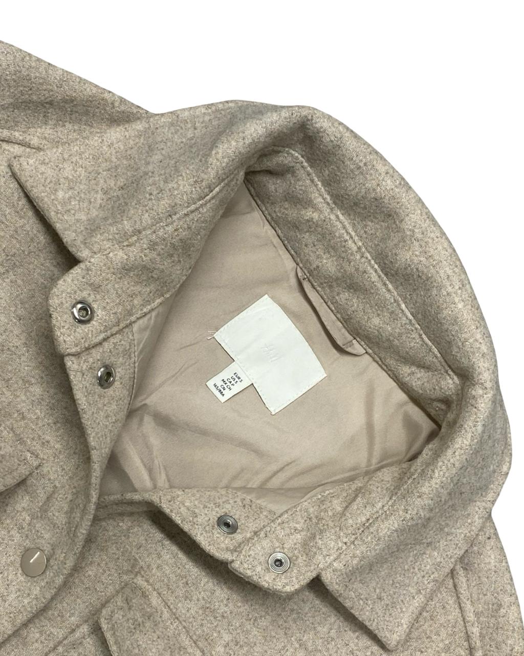 A sleek and neutral-toned padded overshirt from H&M, perfect for casual layering in fall and winter. Its minimalist beige design and padded lining combine both style and warmth.