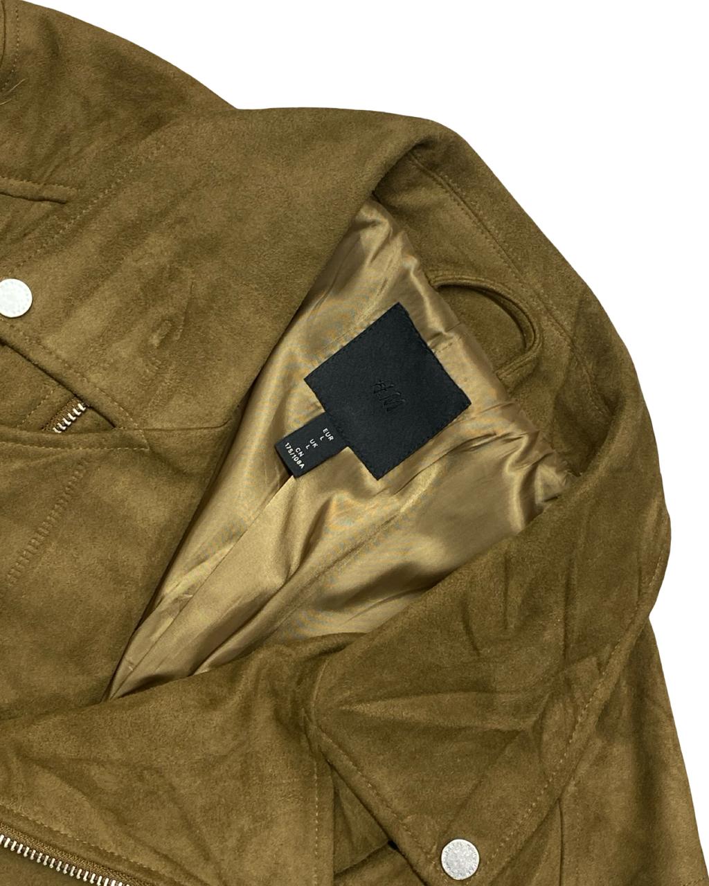 Elevate your outerwear game with this chic brown faux suede moto jacket from H&M. Designed with a flattering cut and edgy details, it’s a stylish choice for layering in cooler weather. The soft faux suede texture adds a luxurious touch, while silver-tone hardware enhances its modern biker appeal.
