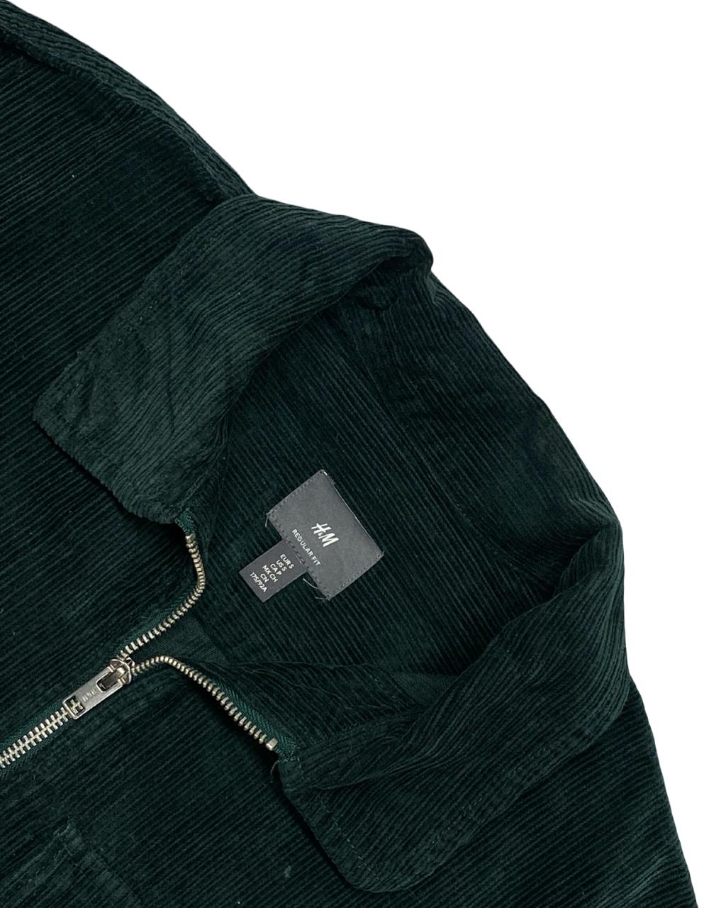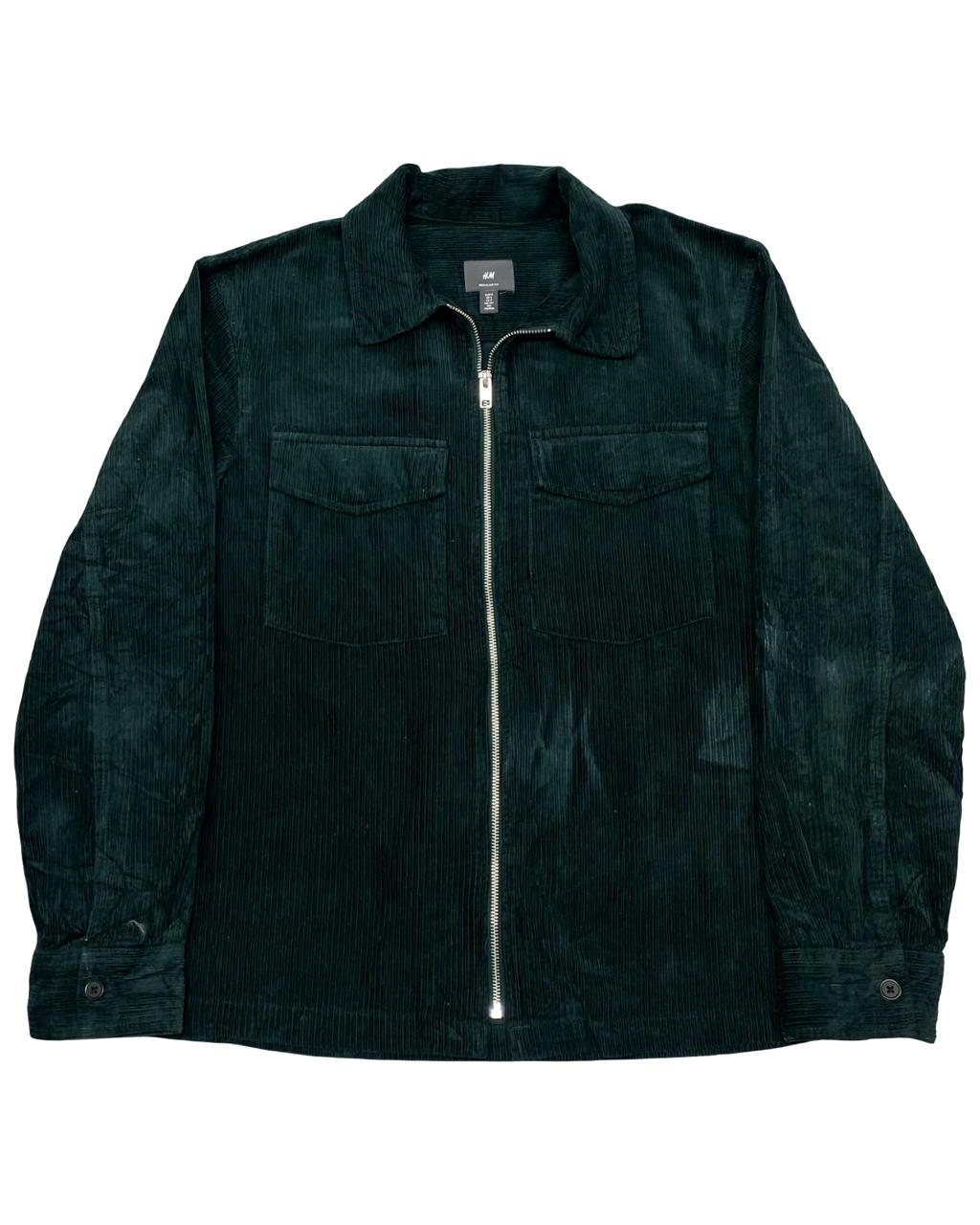 Add texture and style to your layering game with this forest green corduroy zip-up jacket from H&M. The structured silhouette and rugged corduroy fabric make this a great transitional piece — ideal for casual outings, campus style, or urban streetwear.