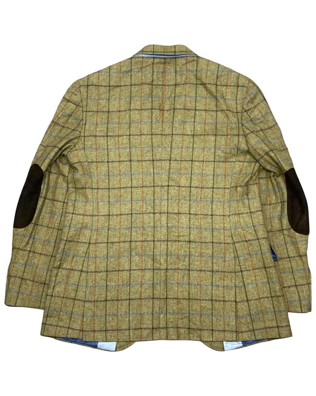 A quintessential British piece from Hackett London, this green tweed check blazer captures timeless country style. With a traditional windowpane pattern, blue satin lining, and suede elbow patches, it’s a perfect blend of classic heritage and refined tailoring.