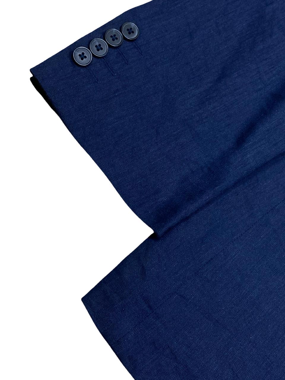 Style: Slim fit, single-breasted, two-button closure, flap pockets