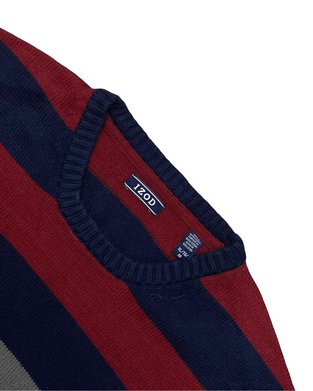 Bold and classic, this IZOD striped sweater features wide bands of red, navy, and gray in a clean, timeless design. Crafted in a lightweight cotton blend, it’s a comfortable go-to for layering or wearing solo on cool days.