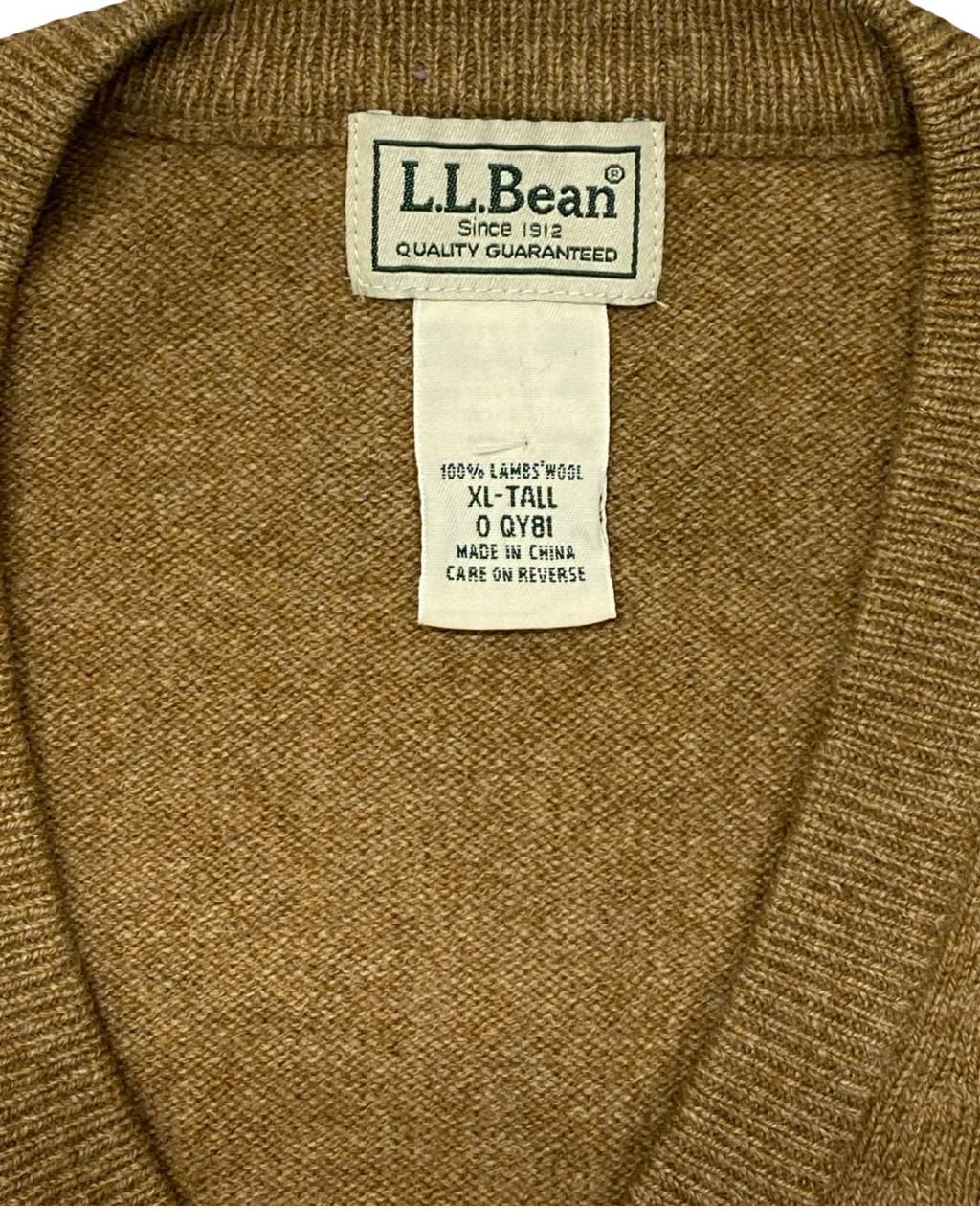 A refined essential from L.L. Bean, this camel brown V-neck sweater is crafted from 100% lambswool for exceptional warmth and softness. With a classic fit and timeless styling, it’s ideal for layering over shirts or under jackets in cool weather.