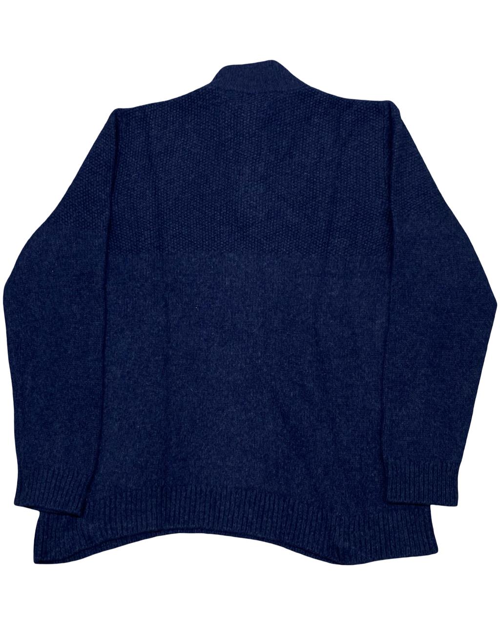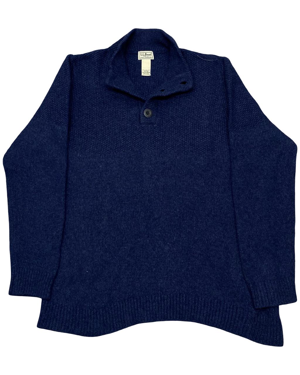This classic navy sweater from L.L. Bean is crafted from 100% lambswool and features a timeless shawl collar with button placket. Designed for warmth and comfort, it’s the perfect cold-weather staple—great for layering or wearing on its own.