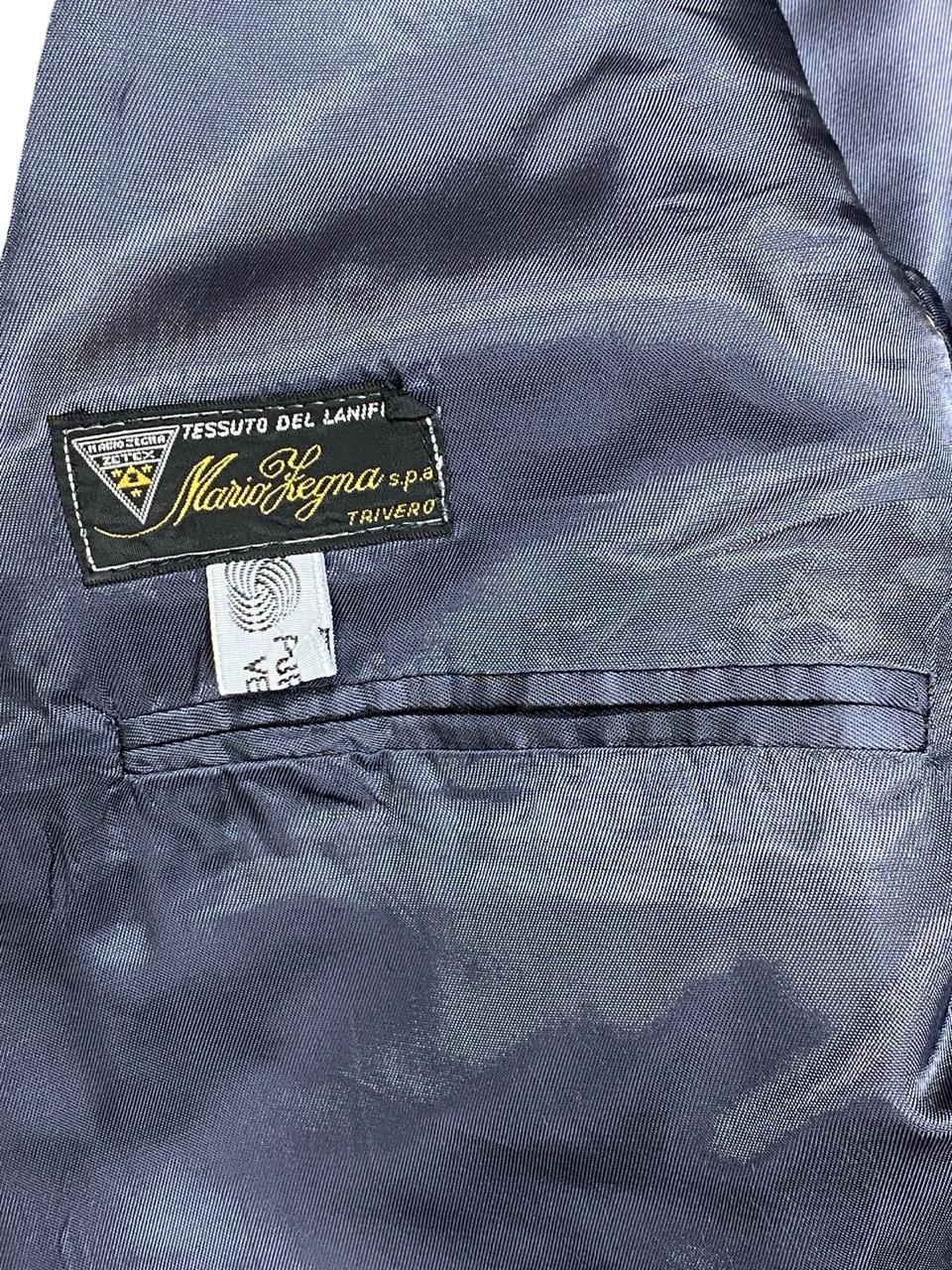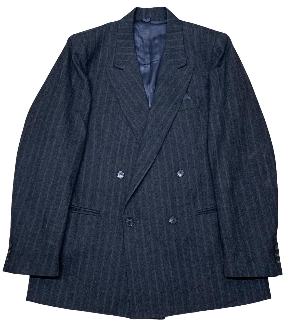 A timeless double-breasted blazer crafted from premium Italian wool by Mario Zegna. Featuring a classic charcoal pinstripe design and wide peak lapels, this piece offers vintage elegance with traditional Italian tailoring—ideal for business formal or elevated classic menswear.
