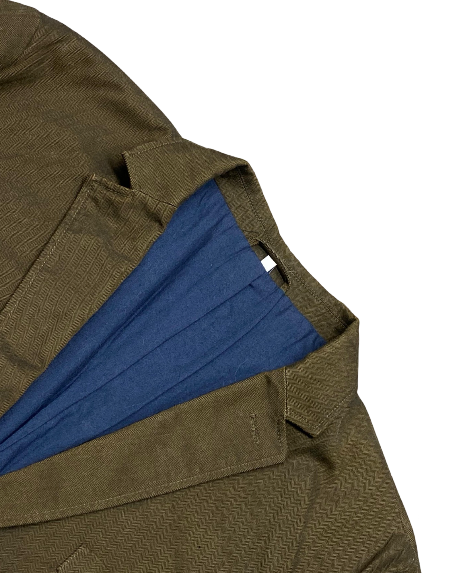 Elevate your smart-casual wardrobe with this Montego olive green blazer, crafted with a rugged yet refined herringbone pattern. Featuring a contrasting blue checkered lining, patch pockets, and a tailored fit, this blazer is perfect for layering over casual and semi-formal outfits.
