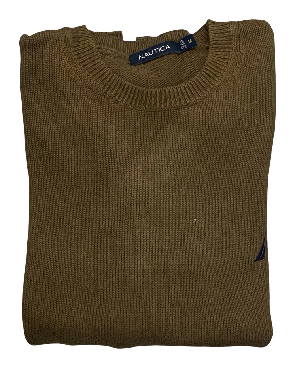 Keep it simple and sharp with this NAUTICA crewneck sweater in a warm olive-brown shade. Featuring a ribbed trim and the iconic embroidered sail logo at the chest, this staple offers laid-back refinement with lasting comfort.
