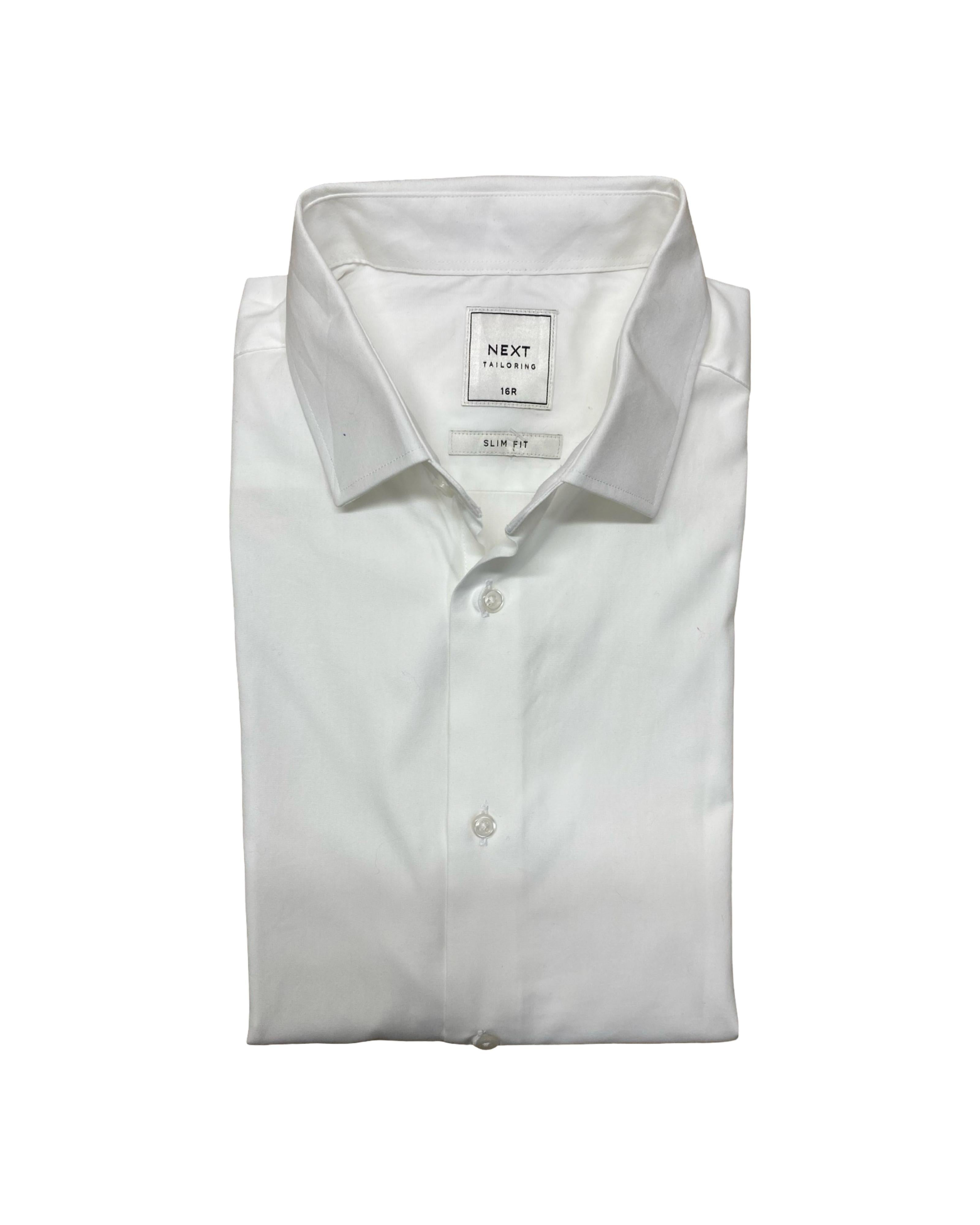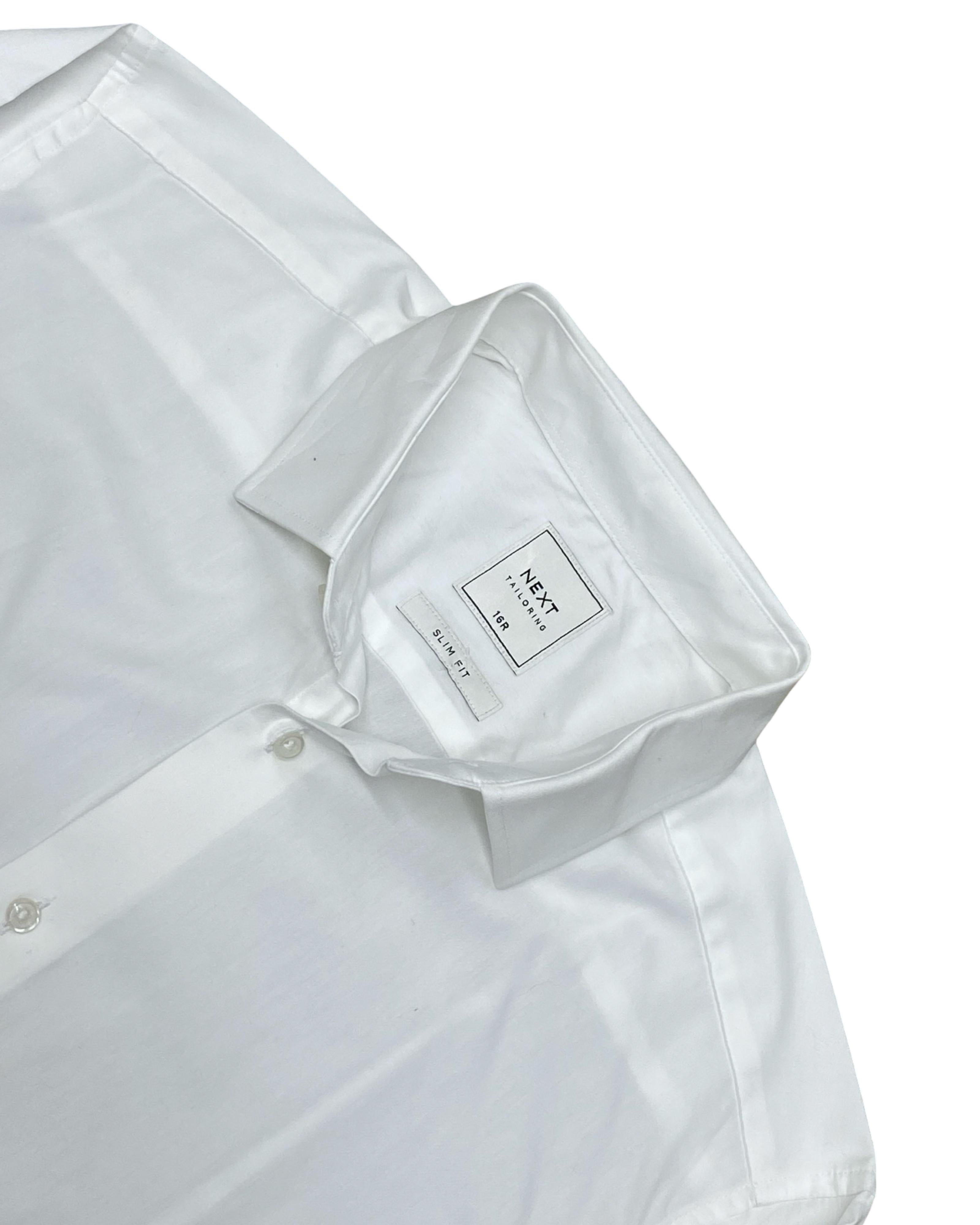 A timeless classic, this crisp white formal shirt from Next Tailoring is a wardrobe essential for any modern gentleman. Its slim fit cut and refined tailoring make it perfect for formal events, business settings, or as a versatile layering piece.