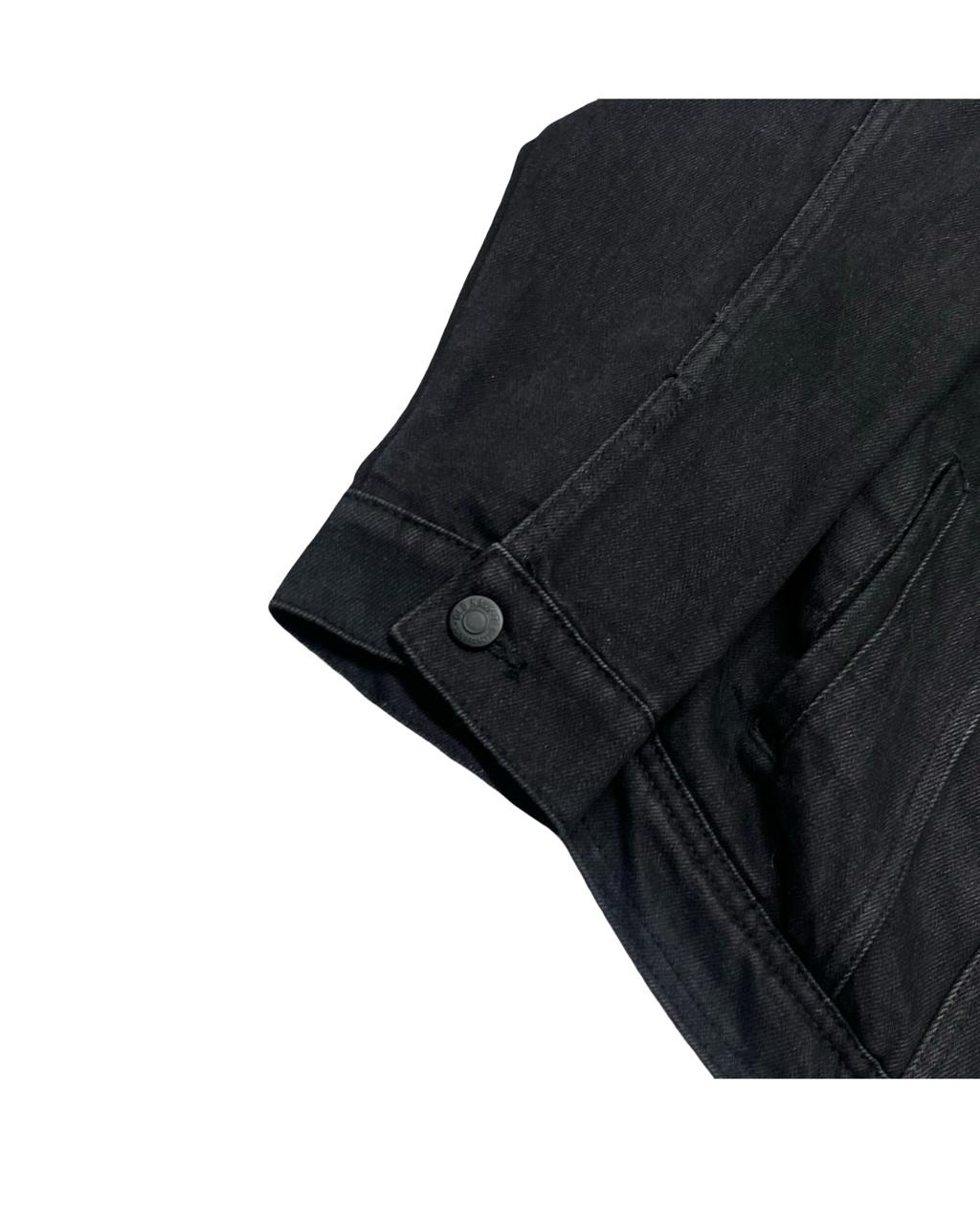 This black denim jacket from Old Navy brings rugged appeal with cozy comfort. Featuring a soft black sherpa collar and lining, it's an ideal layer for colder days — combining utility and street style in one timeless piece.