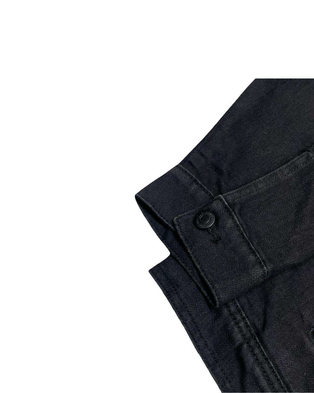 A rugged black denim jacket from Old Navy, elevated with a plush sherpa-lined collar and inner lining for added warmth. A cold-weather staple that blends utility with classic streetwear appeal.