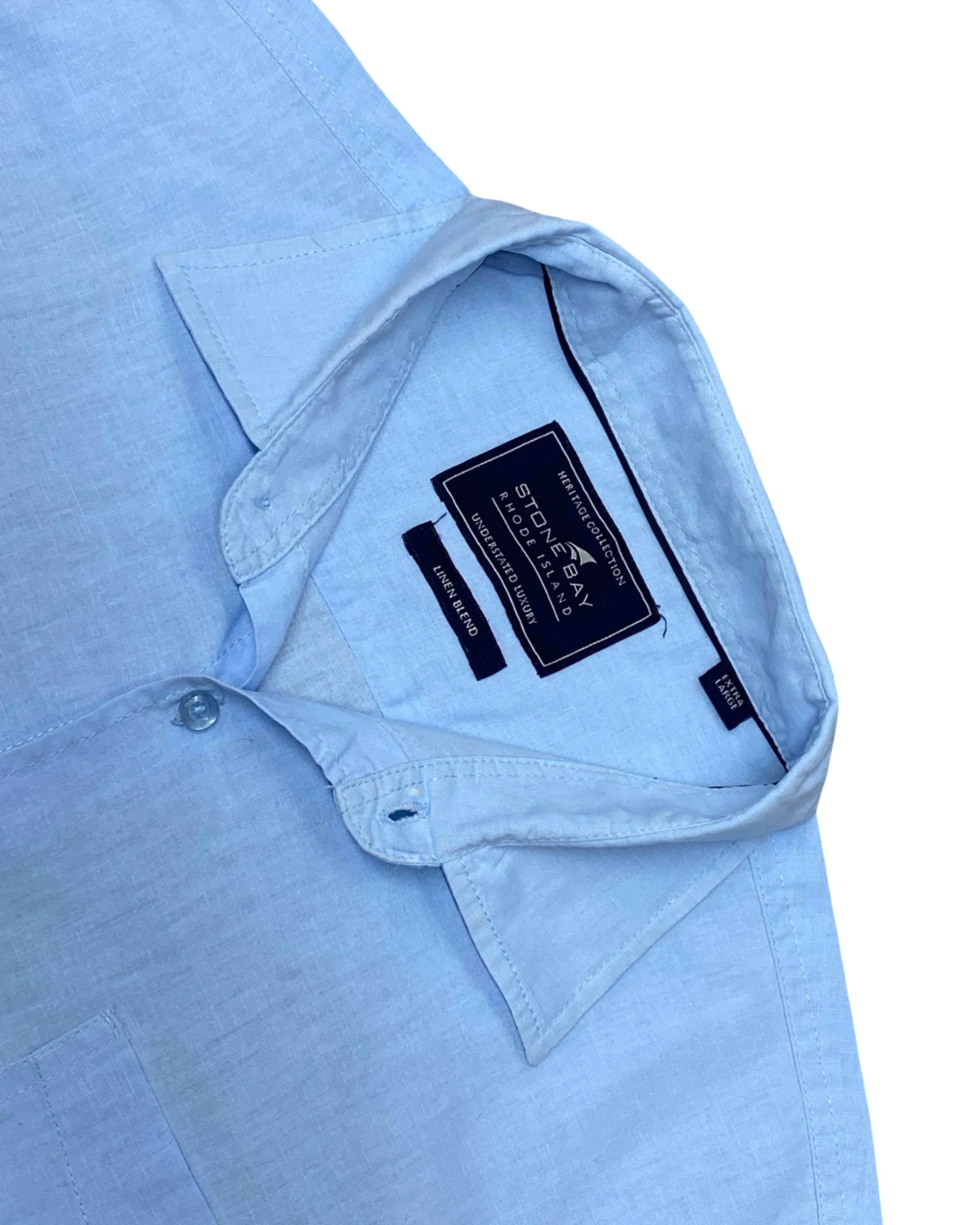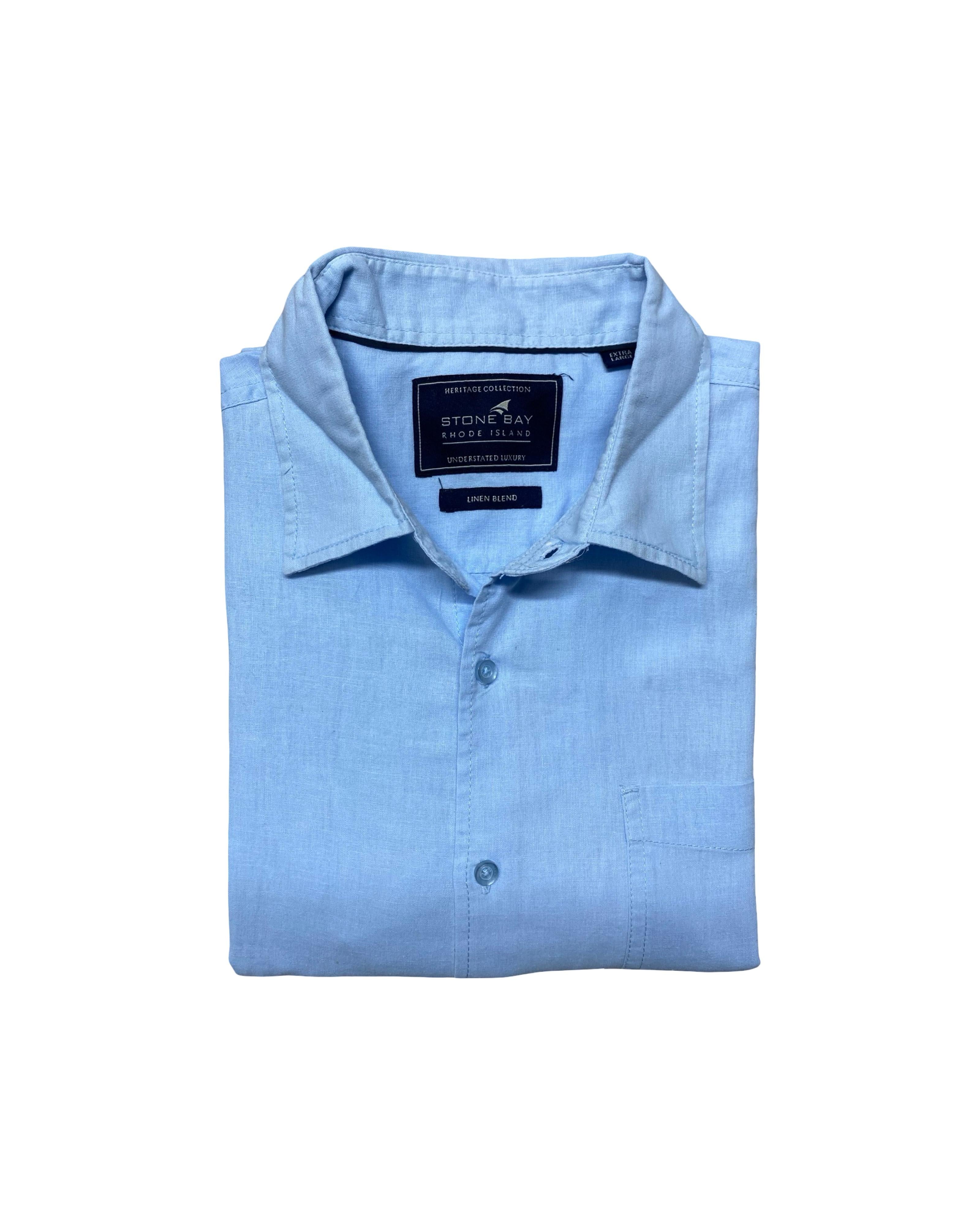 Stay cool and stylish with this soft, light blue linen-blend shirt from Stone Bay. A go-to piece for relaxed, breathable comfort with a touch of class.