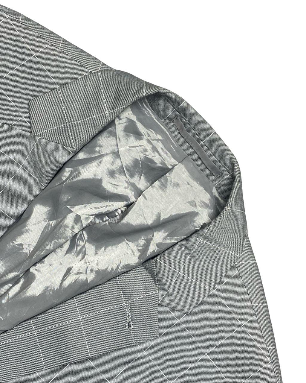 A sharp and modern grey checked blazer from Studio Armand Thiery. The subtle grid pattern adds visual interest, making it ideal for both work and semi-formal occasions.