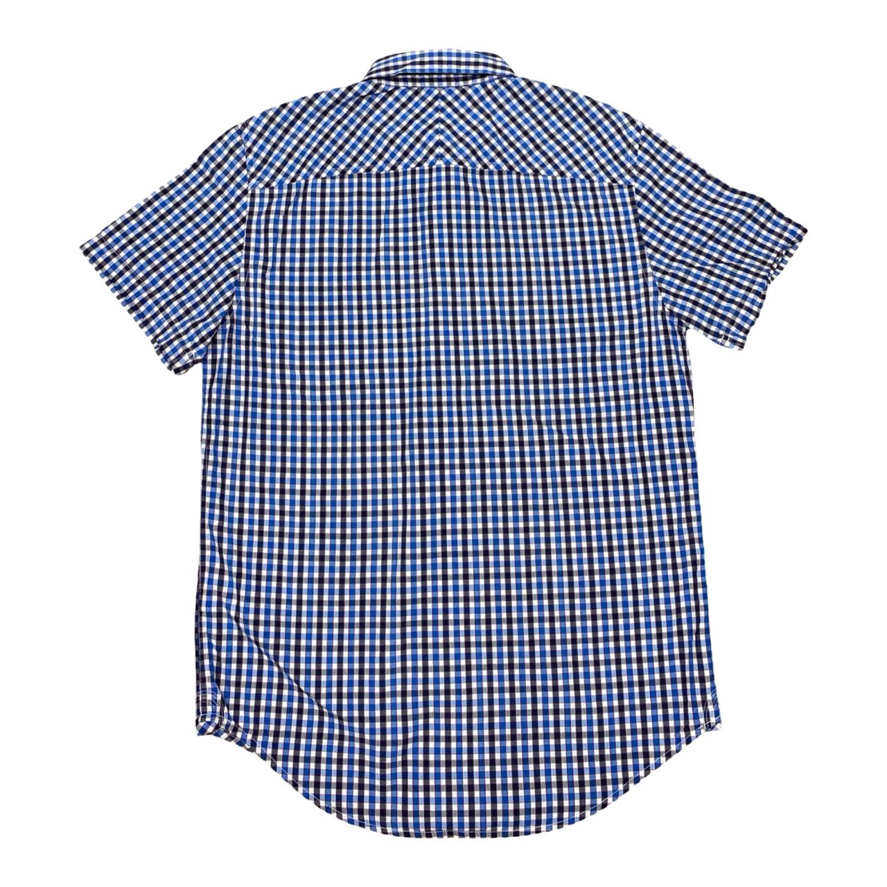 A stylish Timberland short-sleeve checkered shirt in blue and white tones, crafted for comfort and casual wear. Perfect for summer outings and laid-back gatherings.