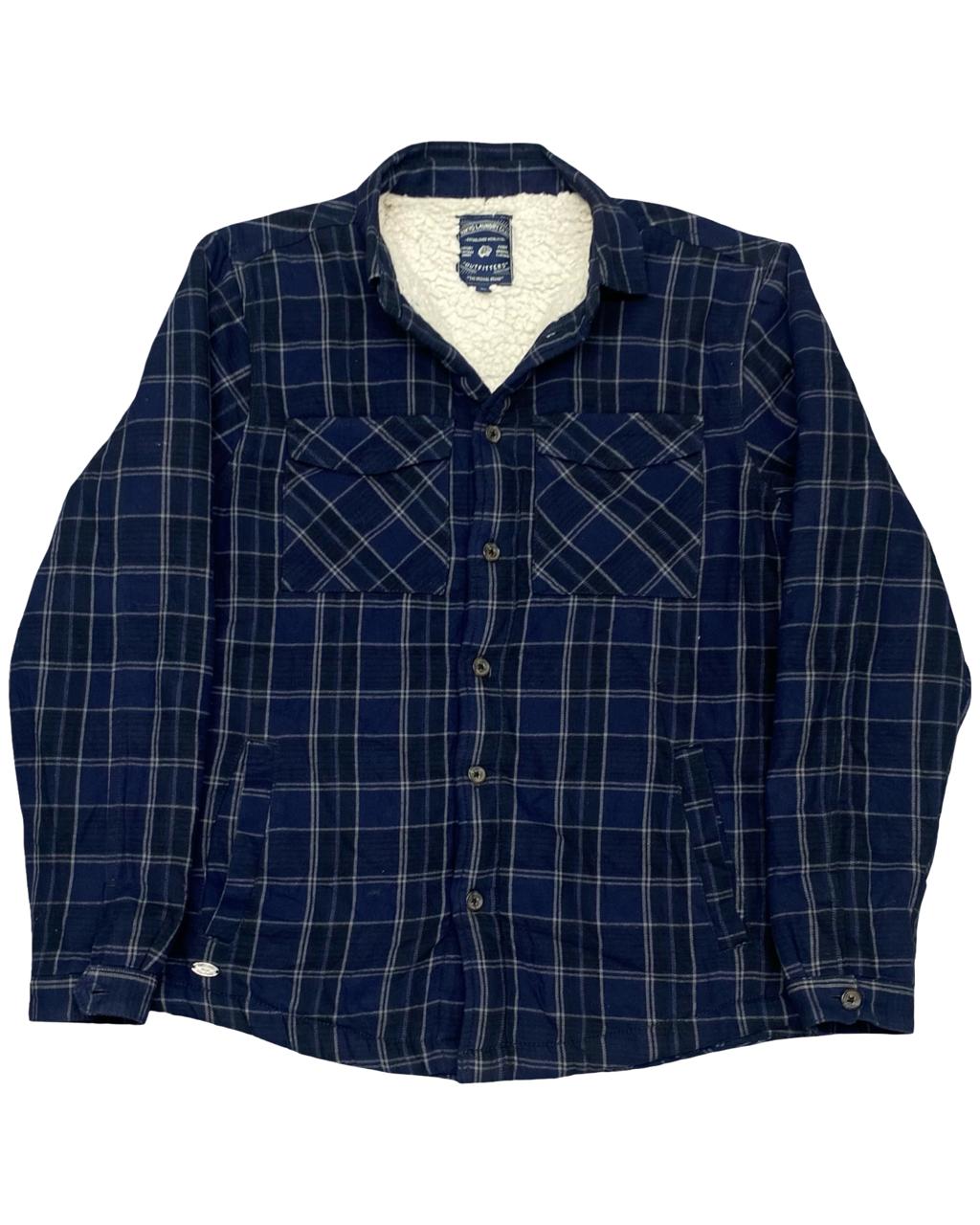 Stay warm in style with this cozy sherpa-lined overshirt by Tokyo Laundry Outfitters. Featuring a classic navy plaid and plush fleece lining, it’s perfect for layering on chilly days while maintaining a rugged, casual look.