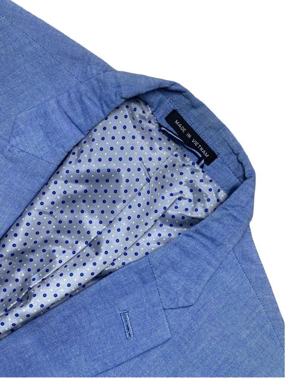 A sharp and lightweight light blue blazer from Tommy Hilfiger, perfect for spring and summer wear. Crafted from a breathable fabric with a soft texture and fully lined in signature polka-dot detail, this piece is both stylish and comfortable—great for weddings, holidays, or casual business attire.