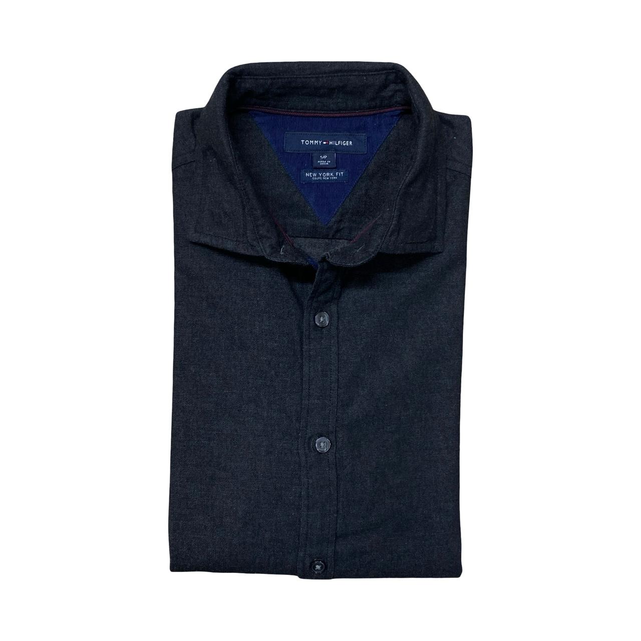 A sleek and versatile Tommy Hilfiger long-sleeve shirt in a deep navy tone, crafted in the New York Fit cut for a modern and tailored look. A wardrobe staple that transitions seamlessly from smart-casual to evening wear.
