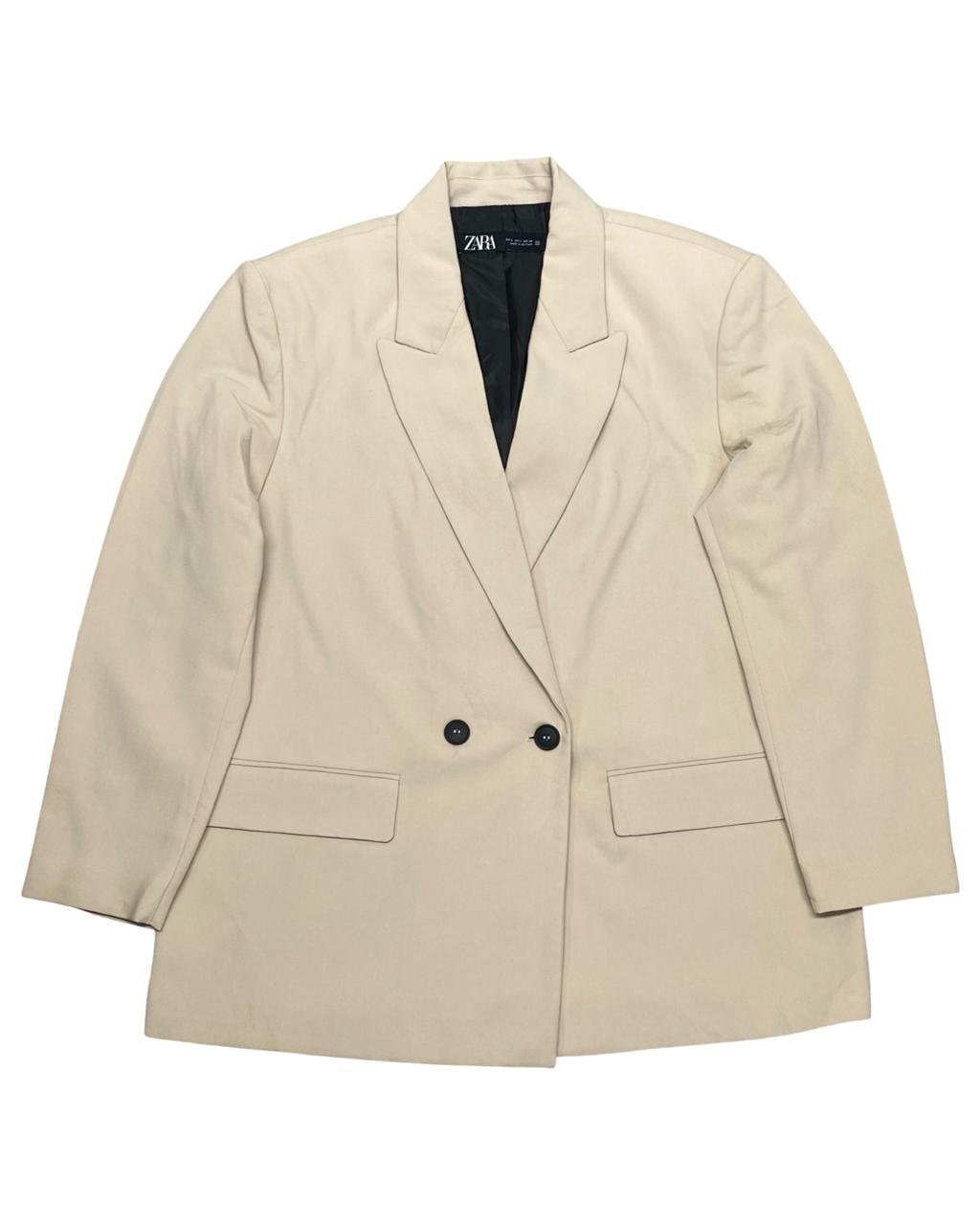 A stylish beige/stone‑hue blazer from Zara with a modern double‑breasted silhouette—perfect for elevating smart‑casual or business‑casual wardrobes.