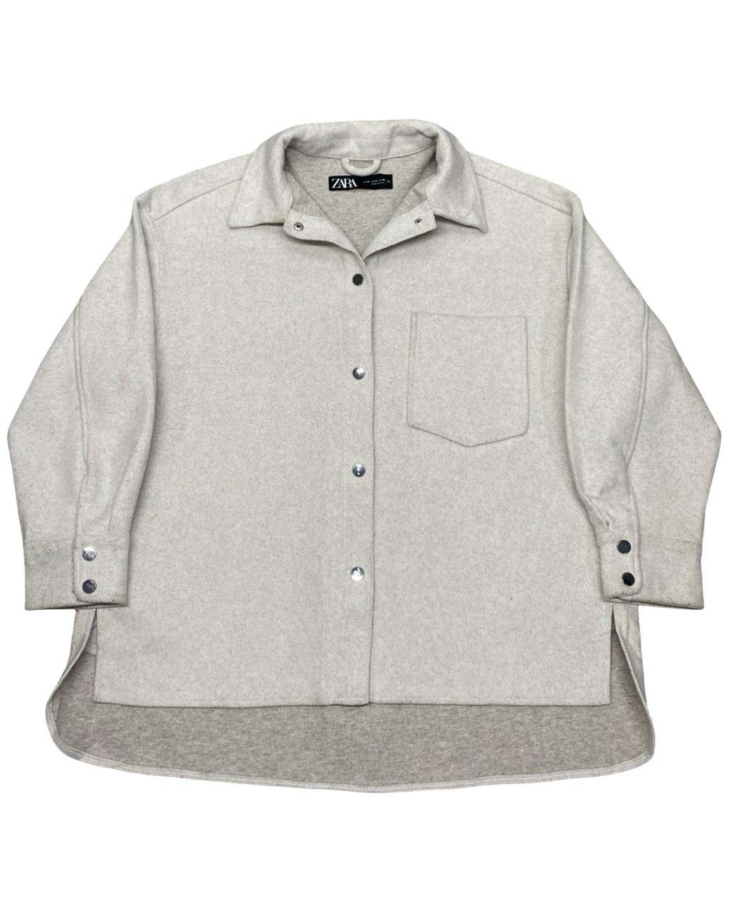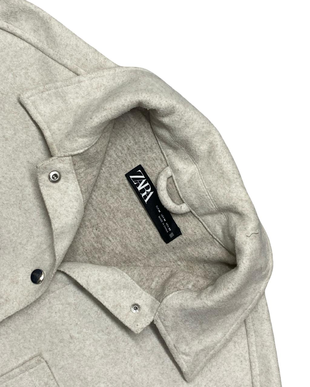 Stay stylish and warm in this minimal yet sophisticated overshirt from Zara Man. Designed in a soft beige wool-blend with a clean front and snap button closure, this versatile piece blends outerwear structure with casual comfort — ideal for layering over tees or sweaters during transitional seasons.