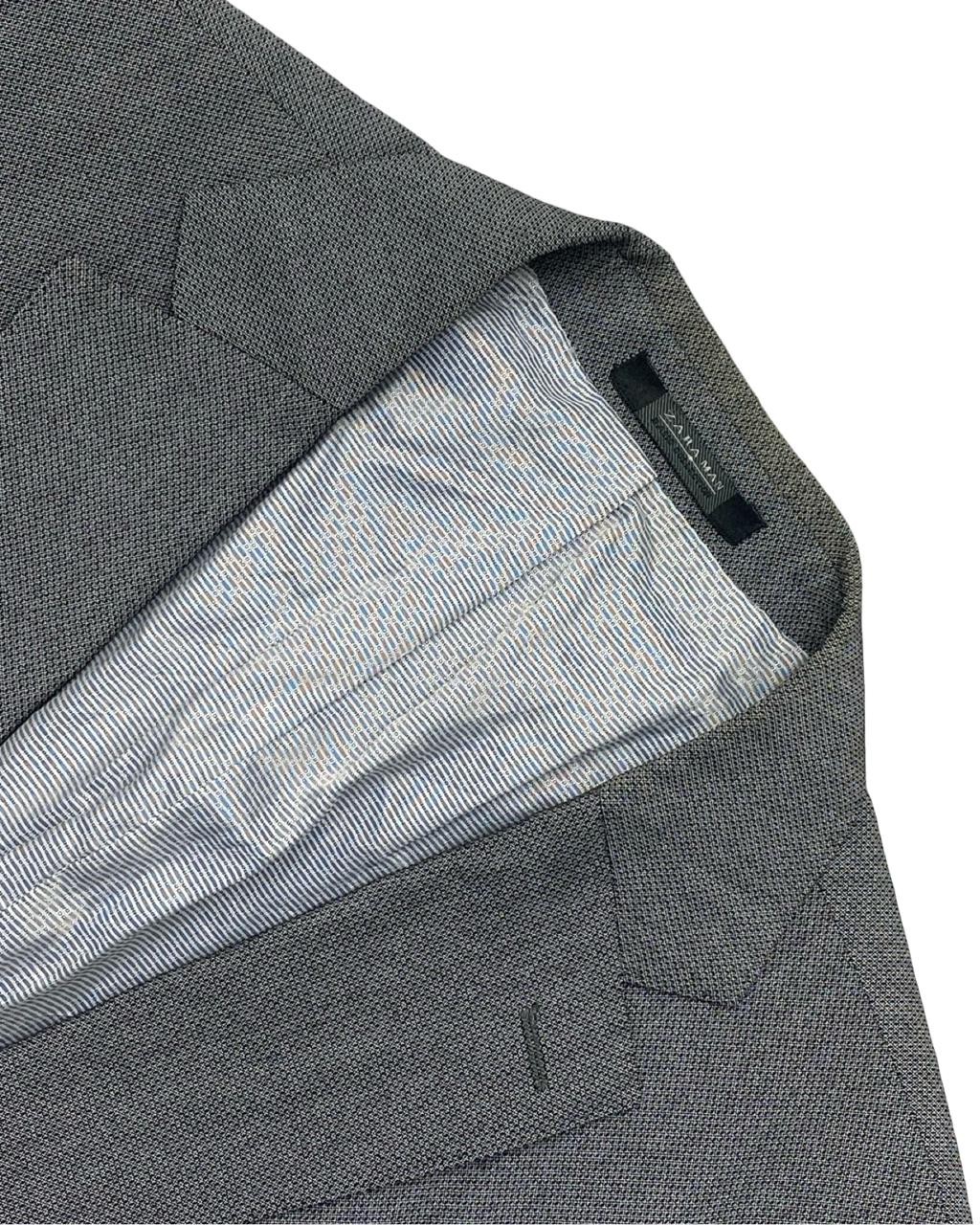 A smart and versatile grey blazer from Zara Man, designed with a clean, modern silhouette. The subtle textured weave and tailored cut make it a reliable choice for office wear, formal meetings, and polished smart-casual looks.